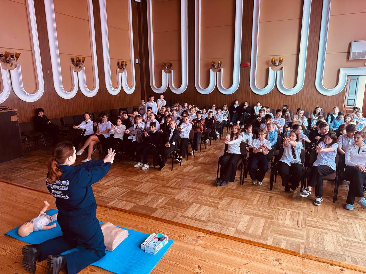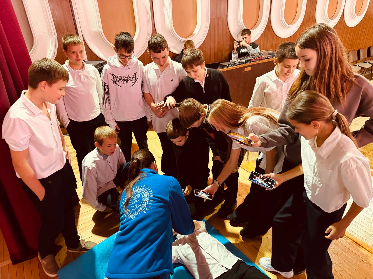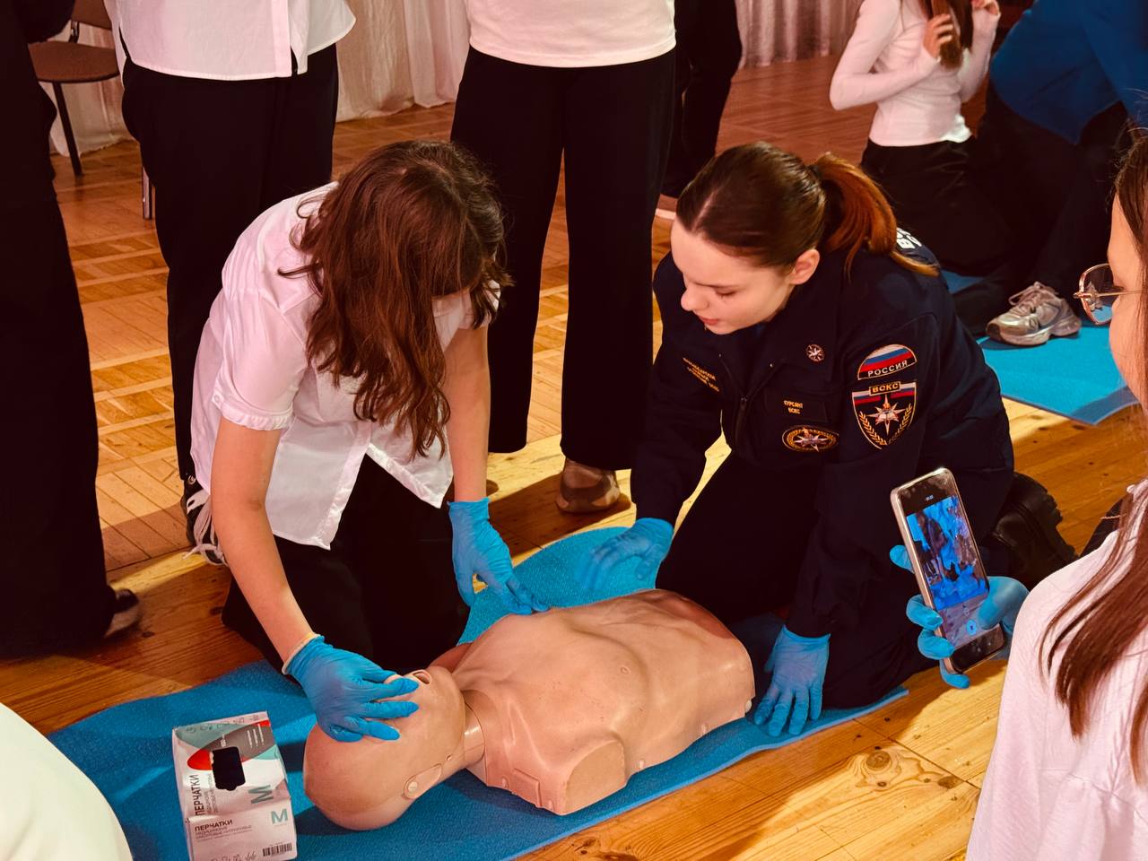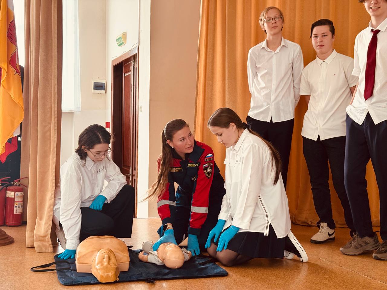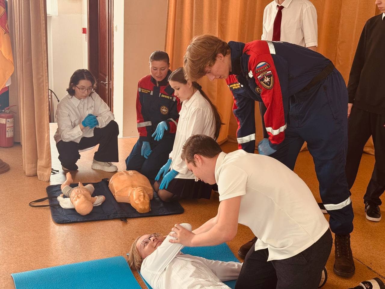 После теоретической части школьники активно отрабатывали полученные знания на манекенах, отрабатывая действия до автоматизма.