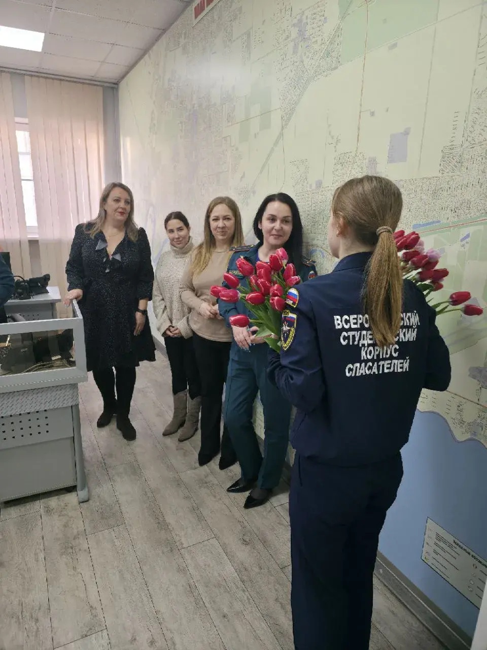 8 марта добровольцы Студенческого спасательного отряда Кубанского государственного медицинского университета поздравили сотрудниц Единой дежурно-диспетчерской службы и Главного управления МЧС России по Краснодарскому краю с Международным женским днём.