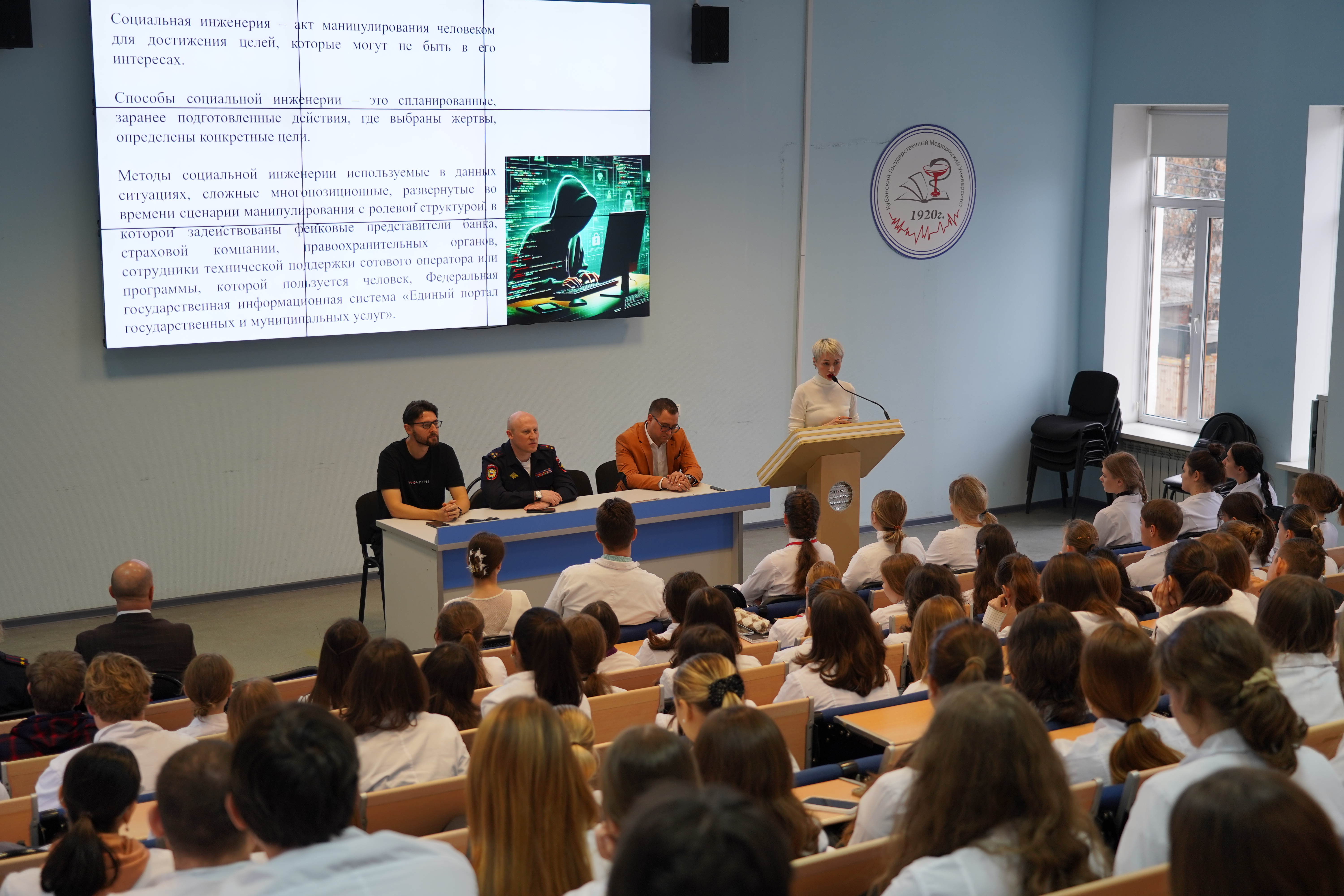 В Кубанском медуниверситете состоялась открытая лекция «Кибербезопасность: как распознать мошенников и защитить свои деньги», организованная при поддержке Главного управления МВД России по Краснодарскому краю. Мероприятие было направлено на повышение цифровой грамотности студентов и сотрудников университета.