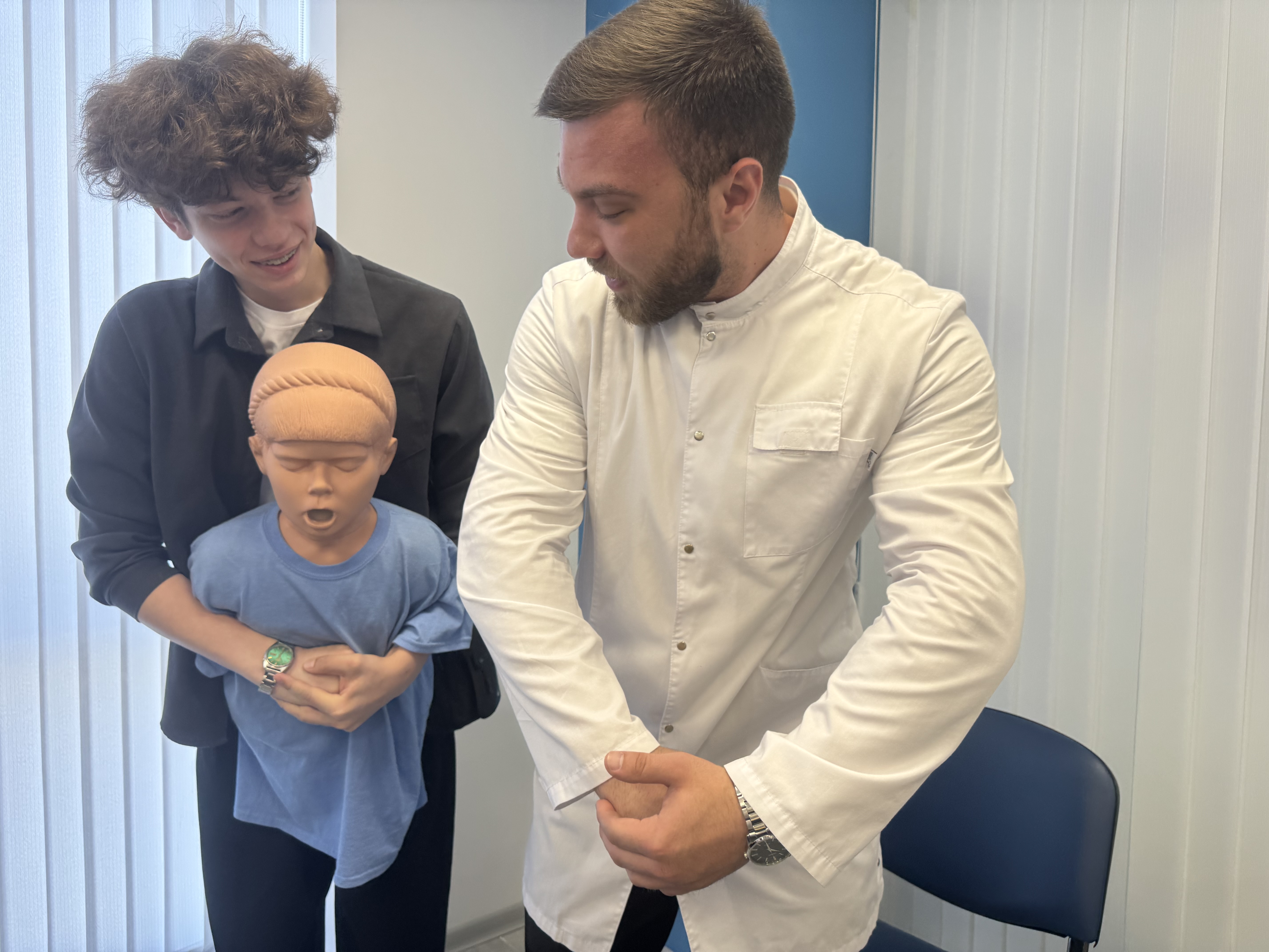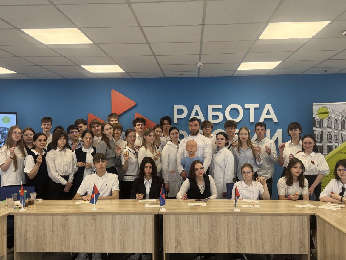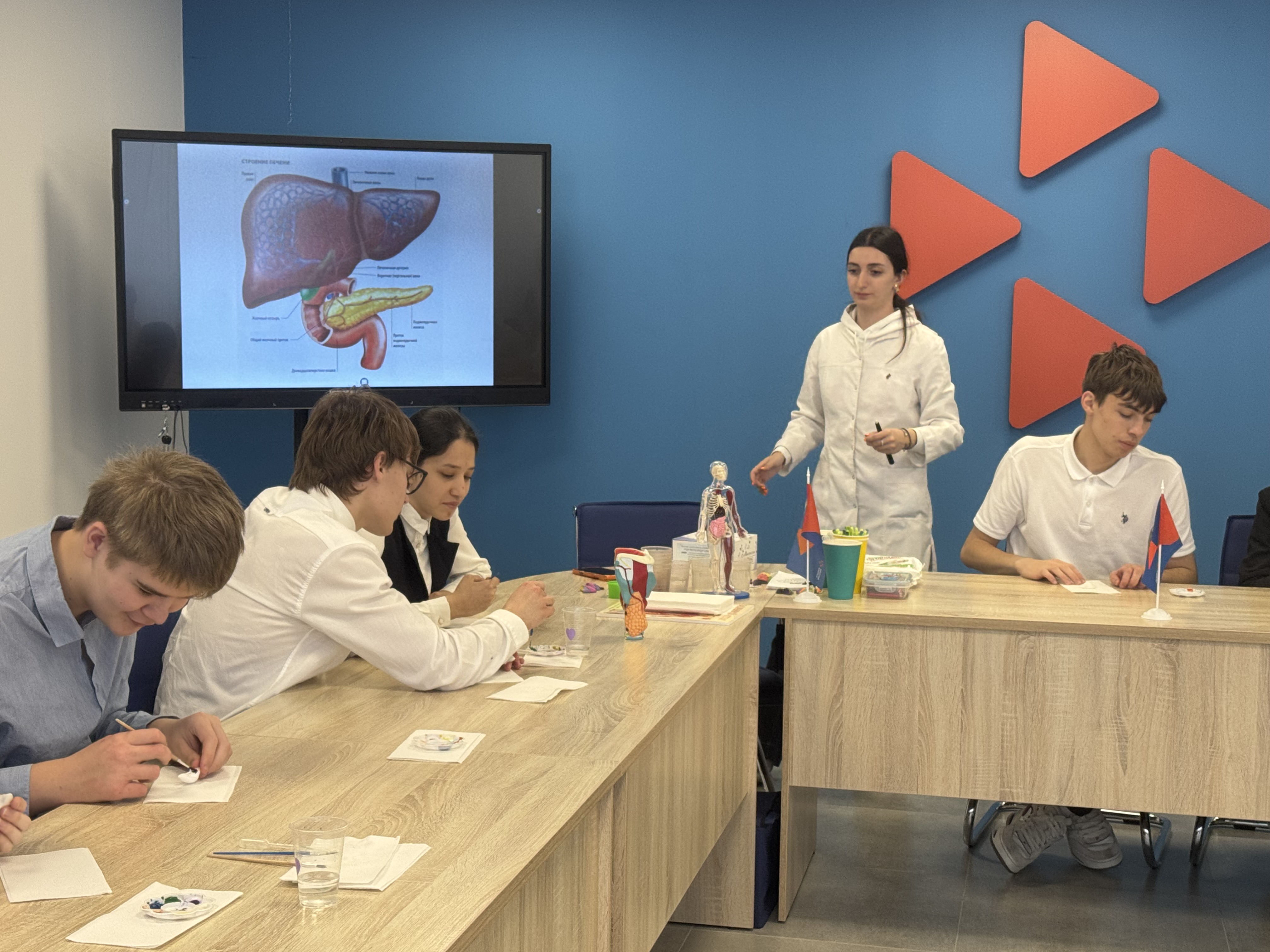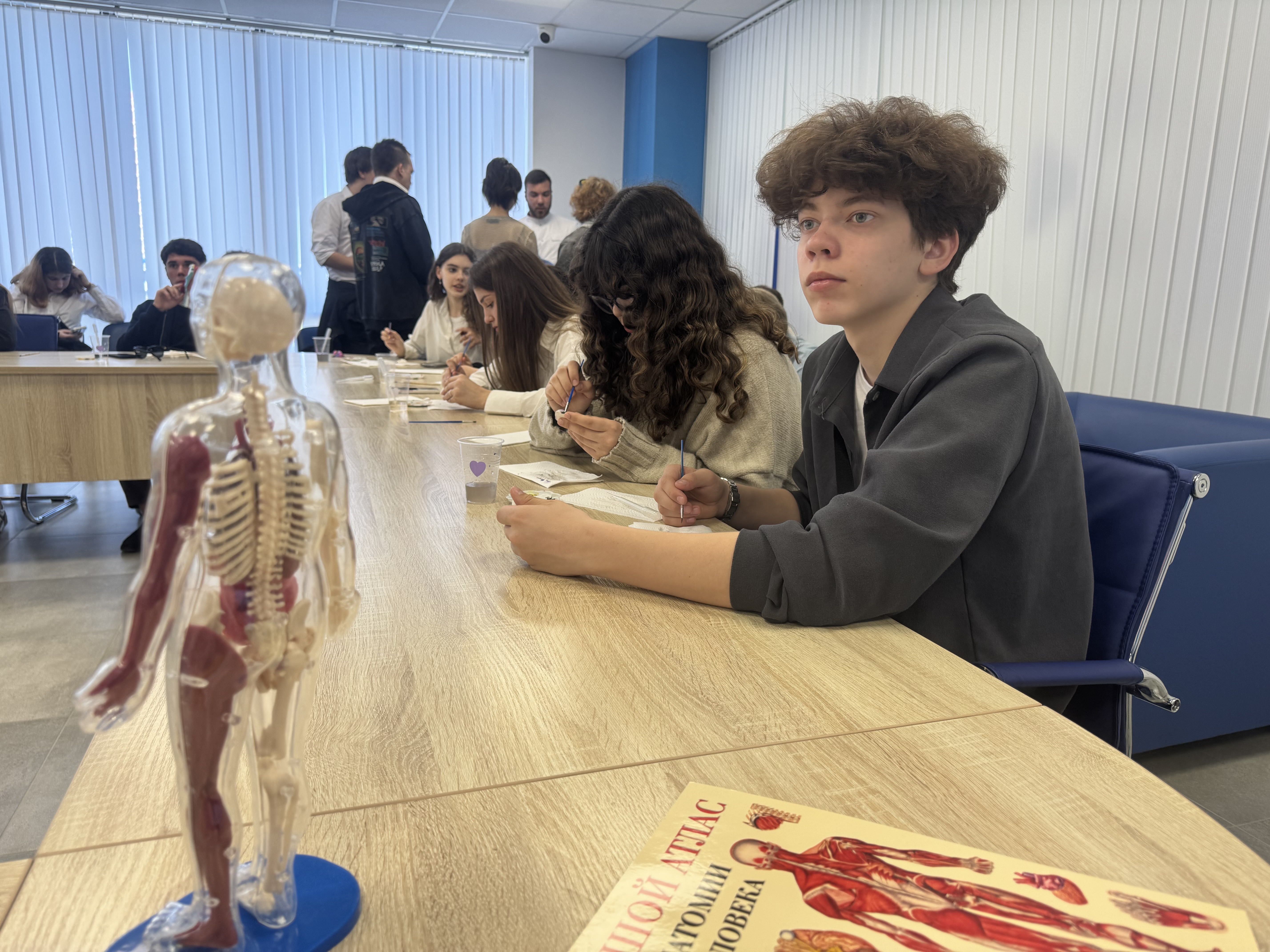 Наставники школы — студенты института среднего профессионального образования Софья Гайдар и Лея Халиф, а также студенты института клинической медицины направления «Лечебное дело» Елена Трапезанова и Денис Остапущенко — провели для школьников мастер-классы по оказанию первой помощи, а также познакомили их с анатомией дыхательной и пищеварительной систем.