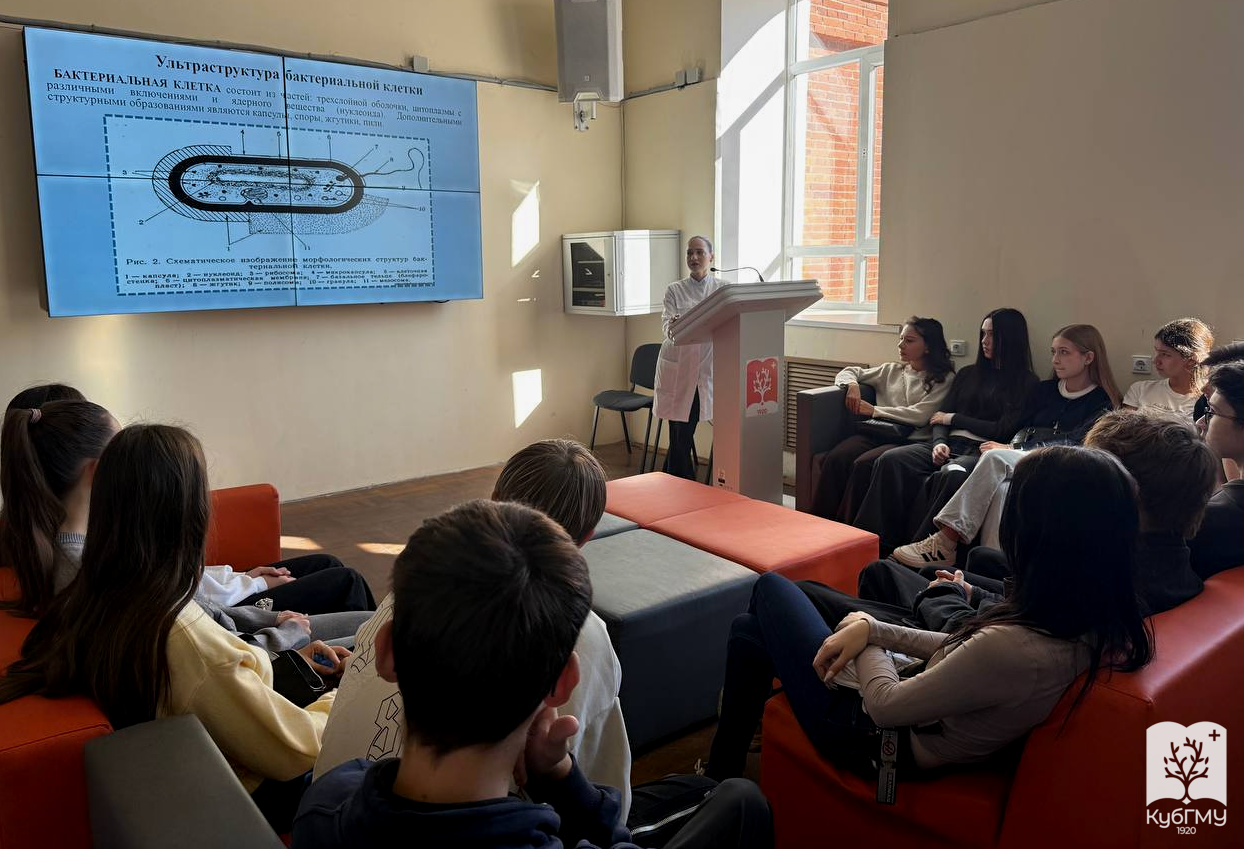 Школьники также посетили лекции по микробиологии, физиологии пищеварения и гигиене полости рта, подготовленные участниками студенческого научного общества «Биохимия»: