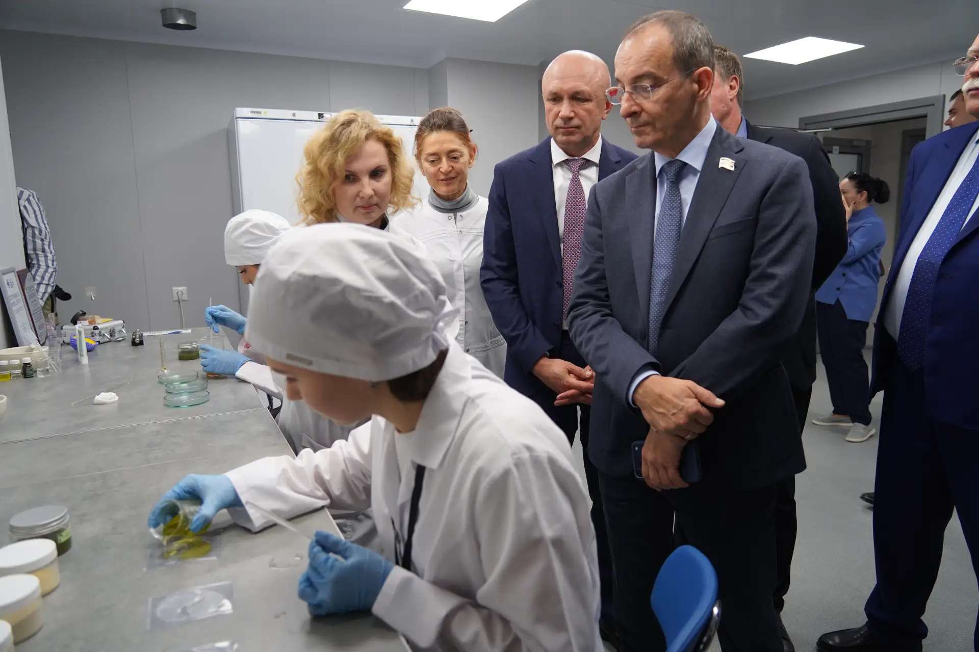 В рамках визита гости ознакомились с деятельностью научно-технологического центра биомедицины, созданного в конце 2025 года. Ректор КубГМУ Сергей Алексеенко совместно с коллективом центра провёл для гостей экскурсию по лабораториям и представил ключевые направления работы.