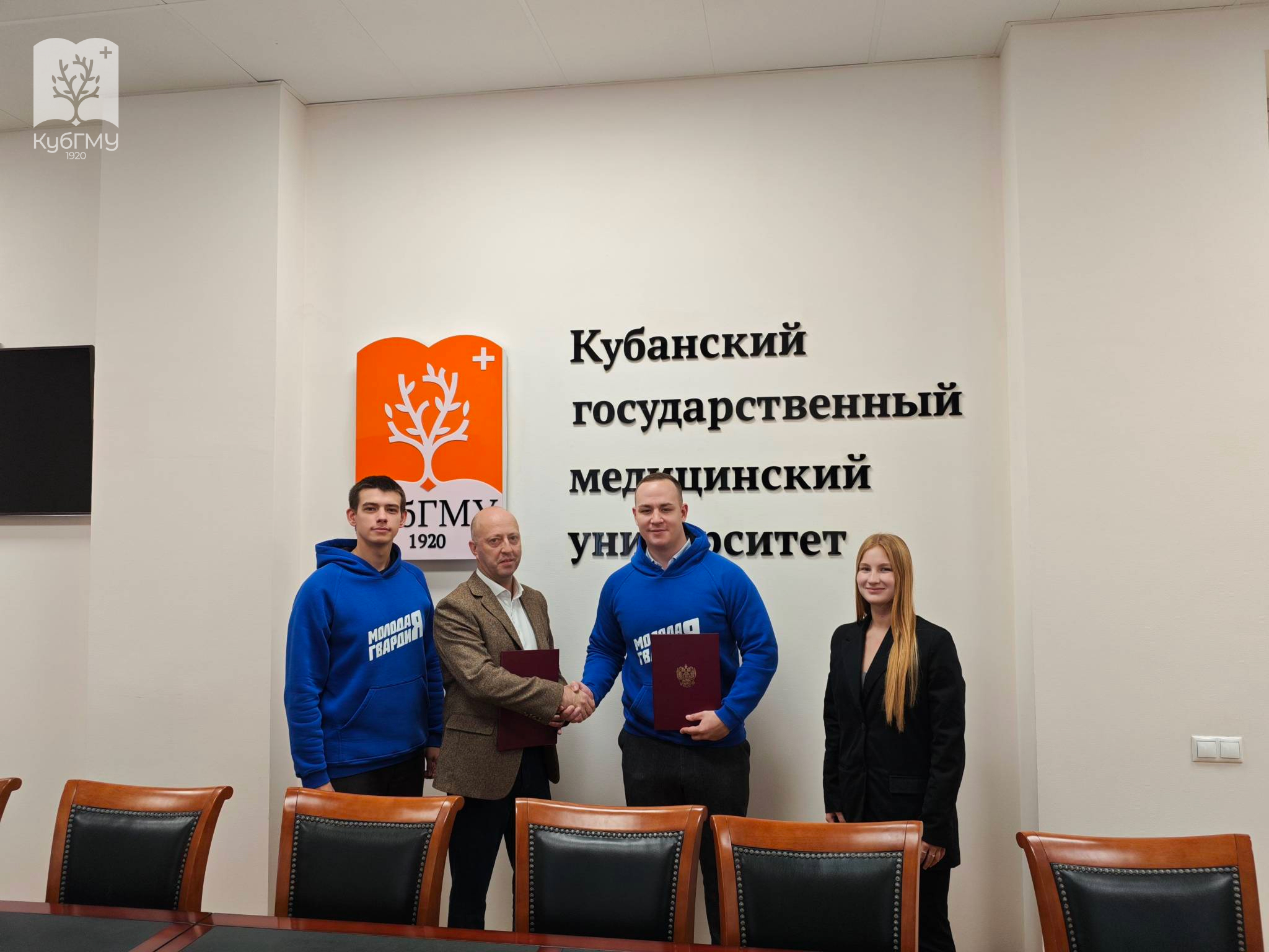 В Кубанском медуниверситете состоялось подписание соглашения о взаимодействии между вузом и региональным отделением «Молодой Гвардии Единой России». Документ направлен на развитие совместных инициатив в сфере патриотического воспитания, волонтерской деятельности, поддержки студенческих проектов и укрепления гражданской активности молодежи.