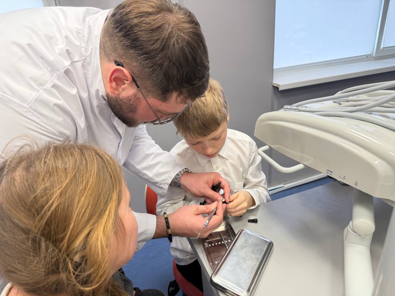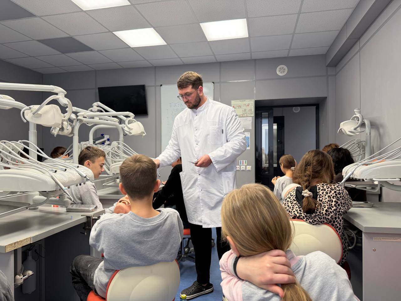 На стоматологическом мастер-классе под руководством Андрея Милешина школьники изучили строение зуба, виды кариеса и самостоятельно выполнили пломбирование гипсовых моделей зубов.