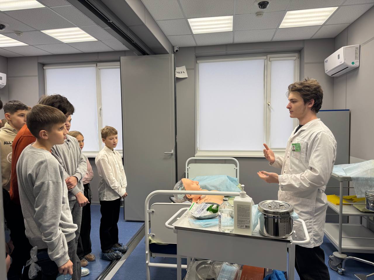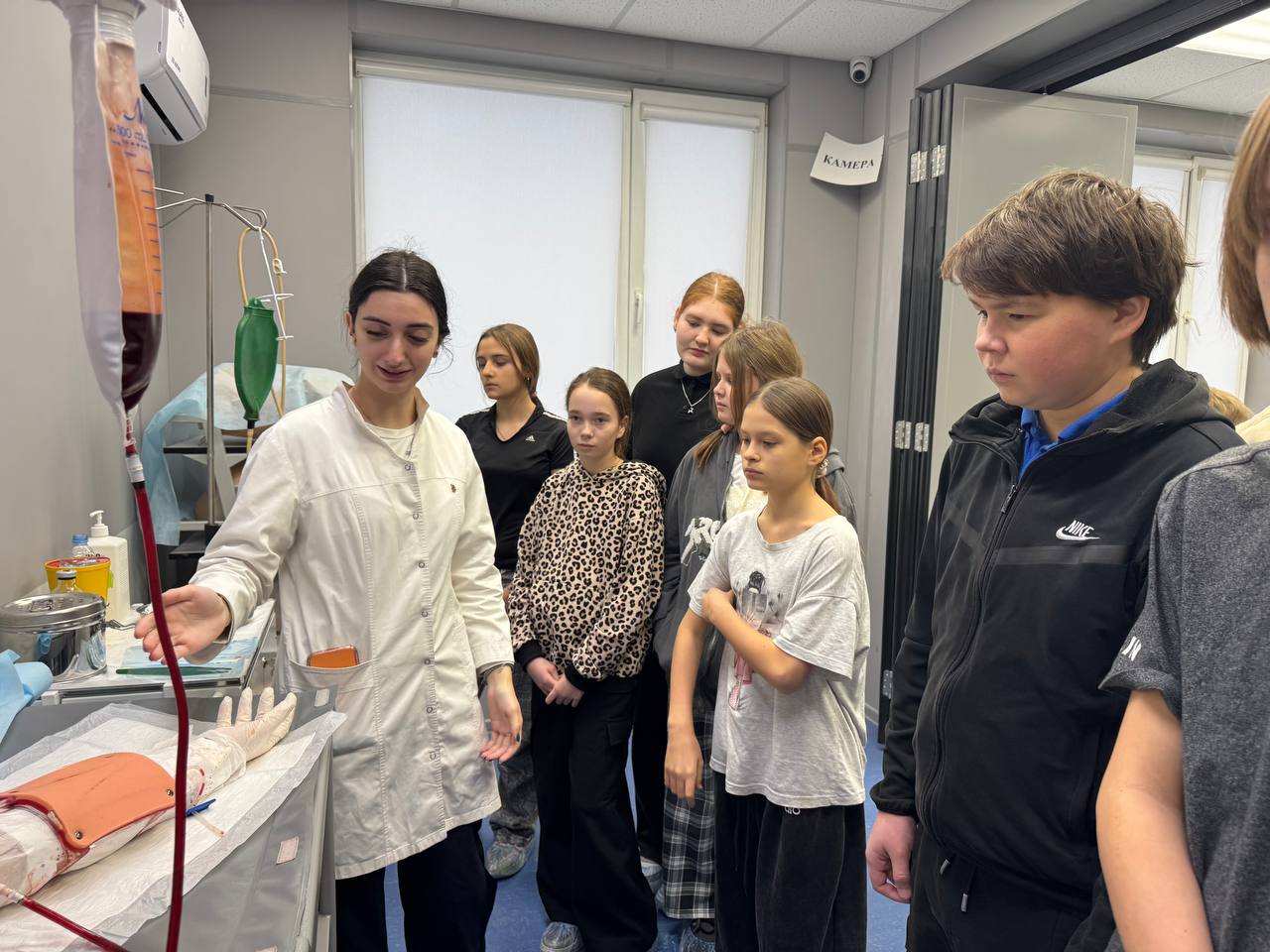 В ходе профориентационной программы учащиеся приняли участие в серии мастер-классов медицинской направленности. Вместе с наставниками Еленой Трапезановой и Давидом Майсурадзе ребята познакомились с видами инъекций и отработали практические навыки на манекенах в мультипрофильном аккредитационно-симуляционном центре.
