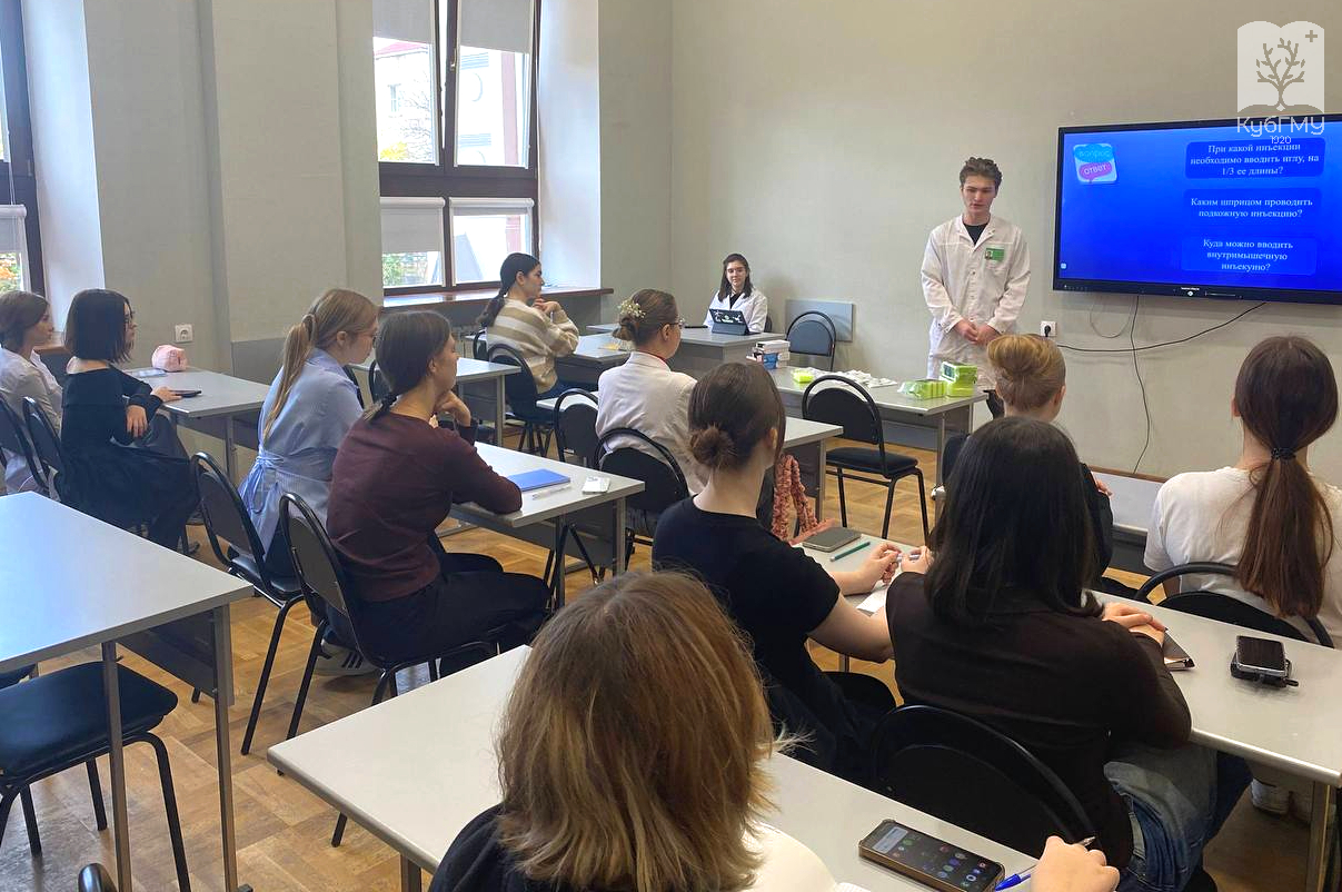 Школьники также побывали на лекции о видах инъекций, применяемых в медицине, и под руководством наставников смогли отработать навыки выполнения внутримышечных инъекций.