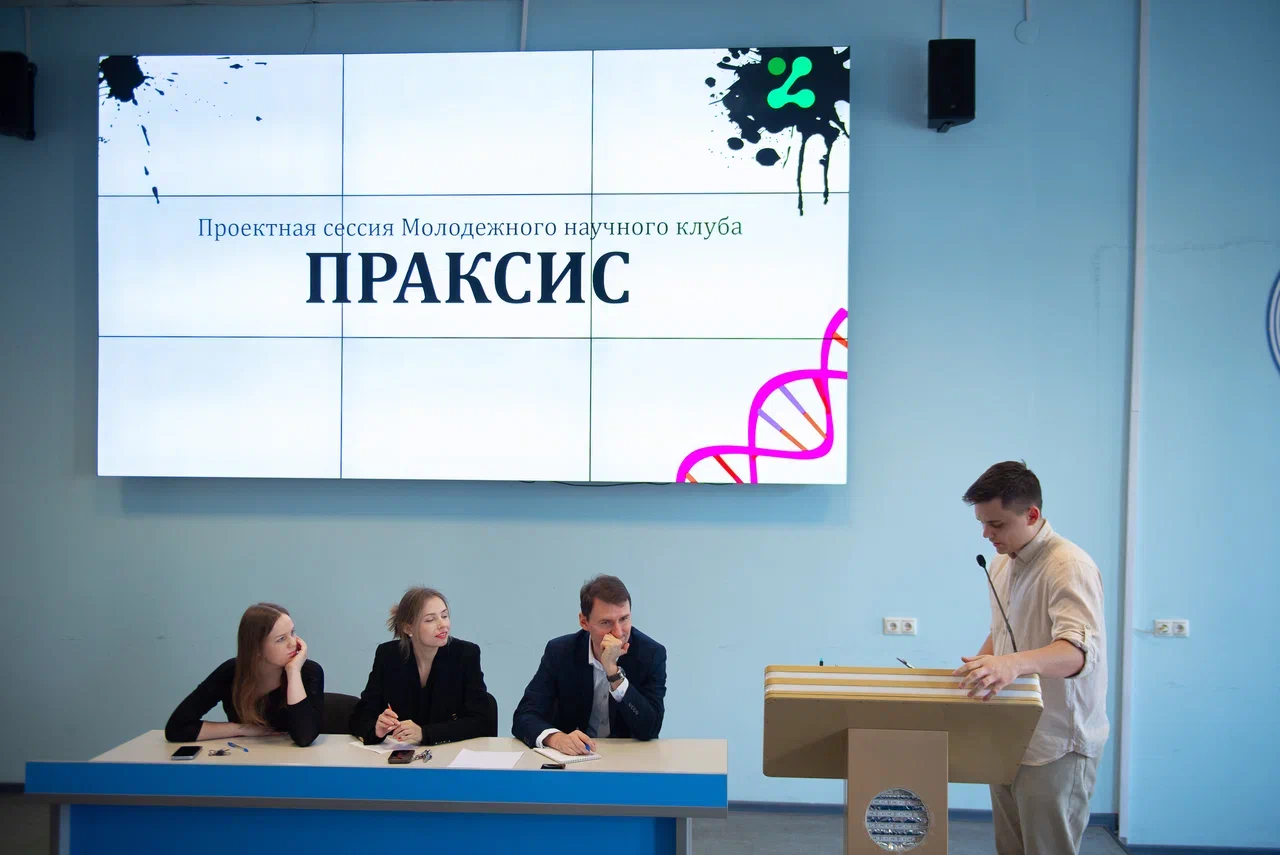 Члены Молодежного научного клуба «Цитринитас» представили слушателям ключевые направления деятельности клуба, актуальные мировые тренды в биомедицинской науке, а также рассказали о собственных научных разработках.