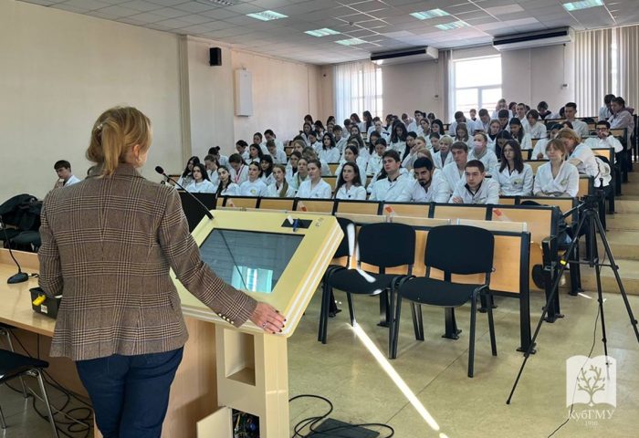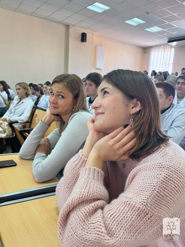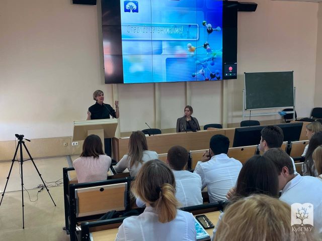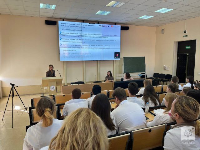 Дискуссия проходила в смешанном формате — участие приняли студенты специалитета, магистратуры и среднего профессионального образования КубГМУ, а также слушатели, подключившиеся к онлайн-трансляции.