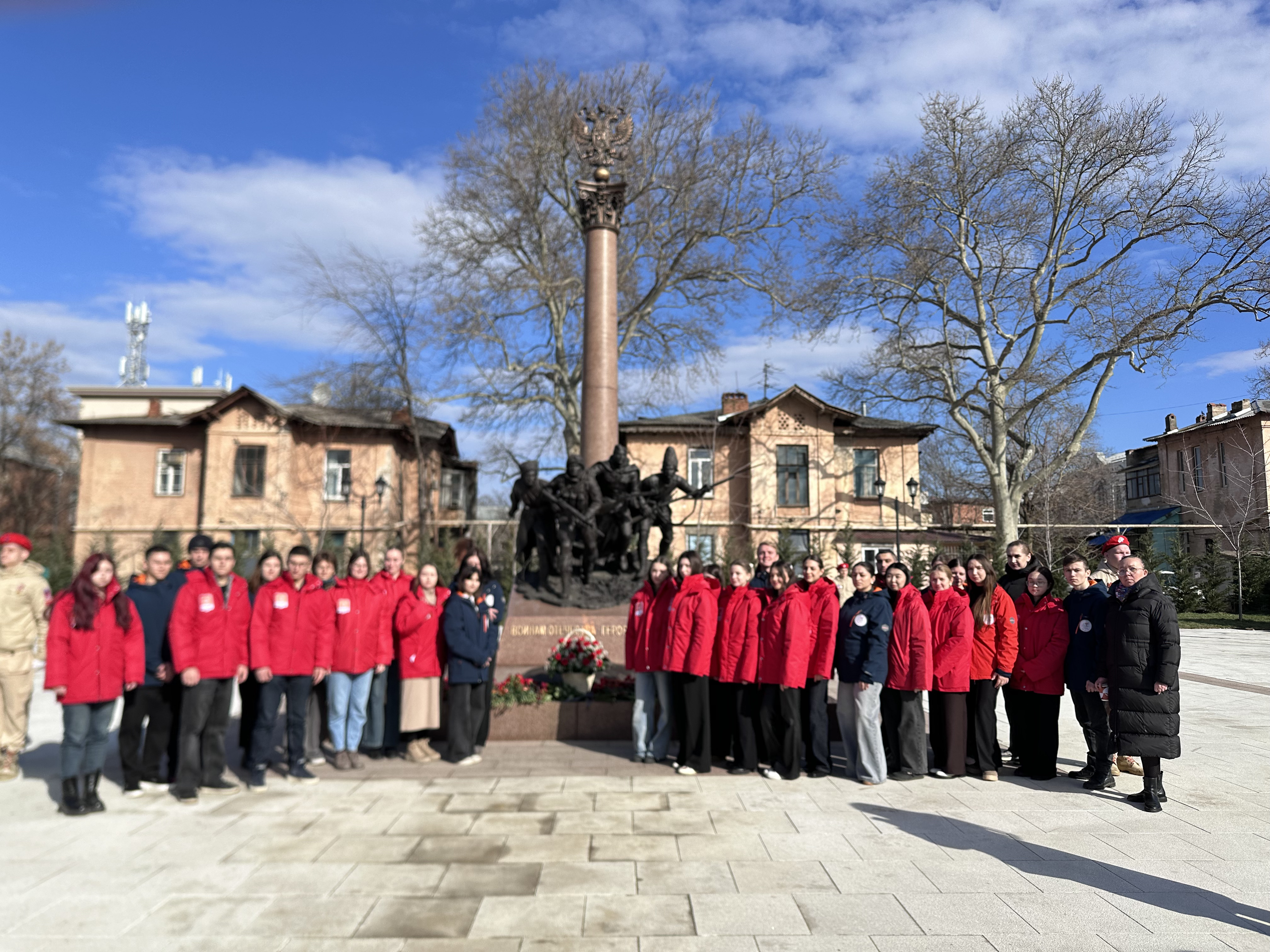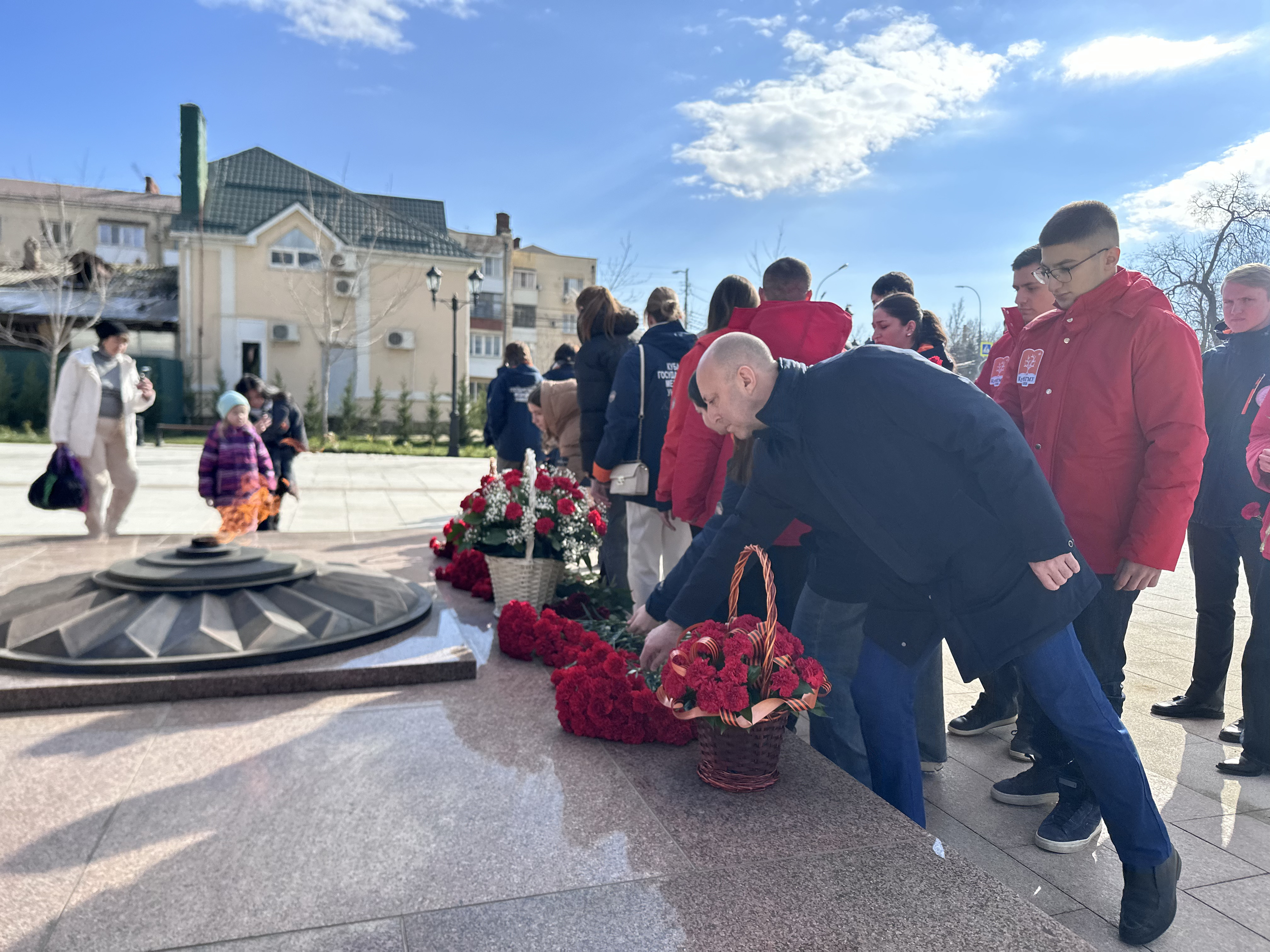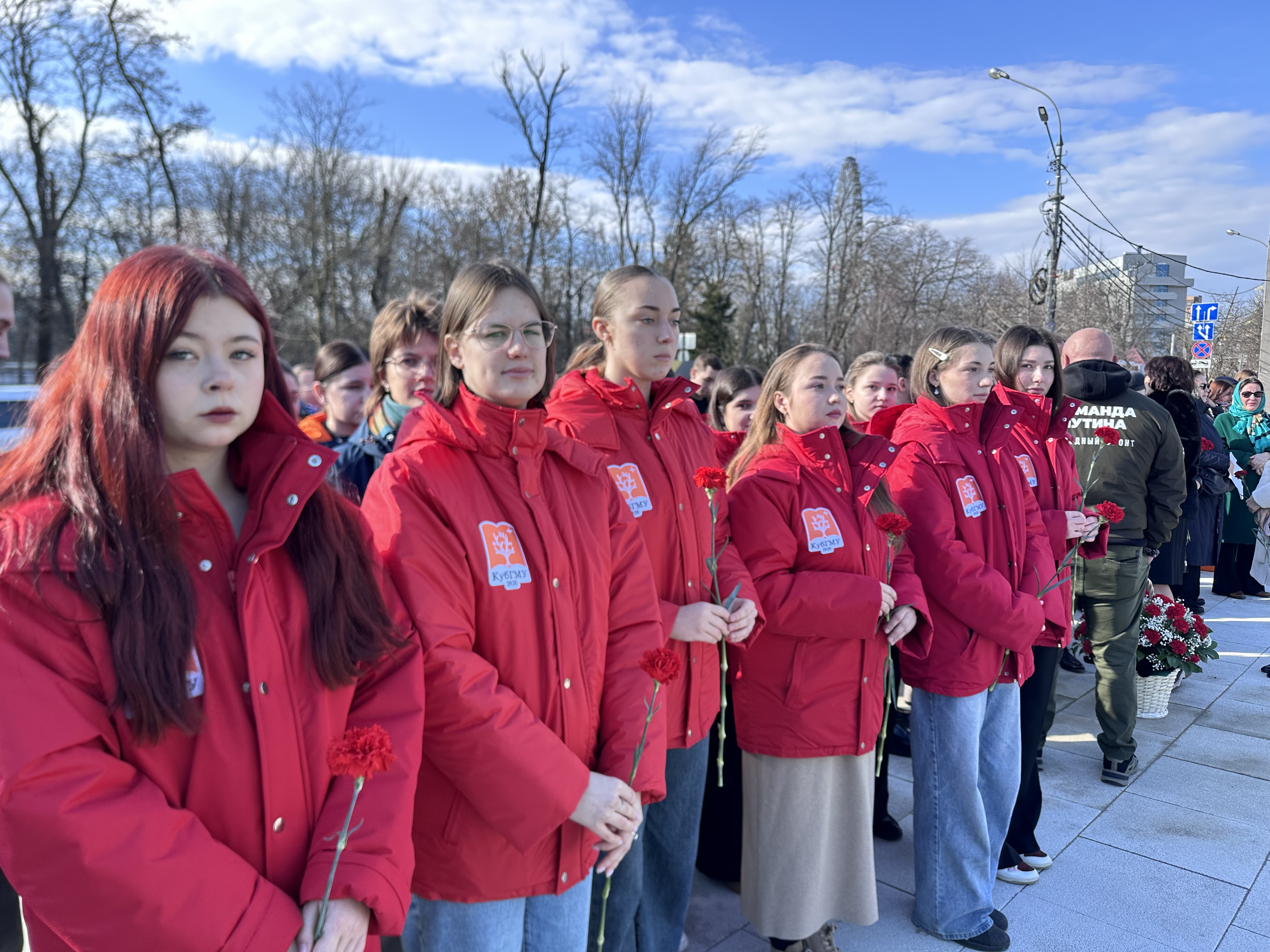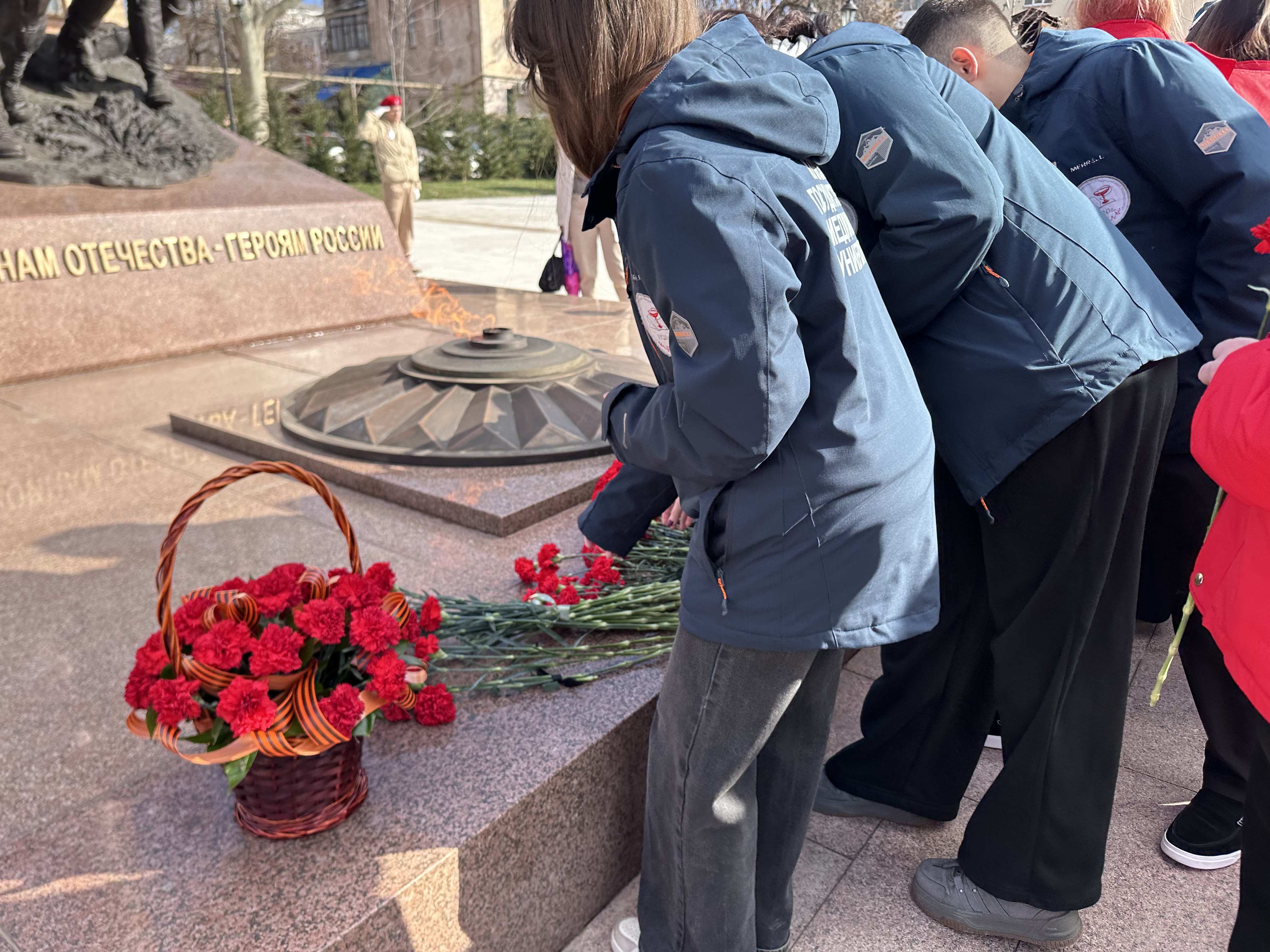 Студенты Кубанского государственного медицинского университета: члены штаба студенческого патриотического клуба МЕДСАНБАТ, активисты Волонтерского центра и Института Наставничества, под руководством проректора по молодежной политике и воспитательной работе Александра Лагутина собрались вместе, чтобы отдать дань памяти тем, кто сражался за свободу и независимость нашего города. Возложили цветы к памятному обелиску, символизирующие благодарность и уважение к подвигам героев.