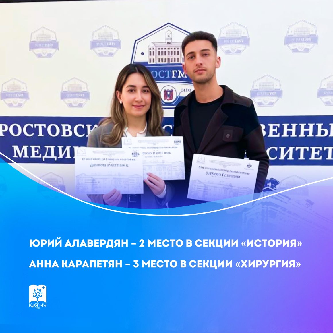 — Анна Карапетян (институт клинической медицины, педиатрия, 1 курс) — 3 место в секции «Хирургия»;