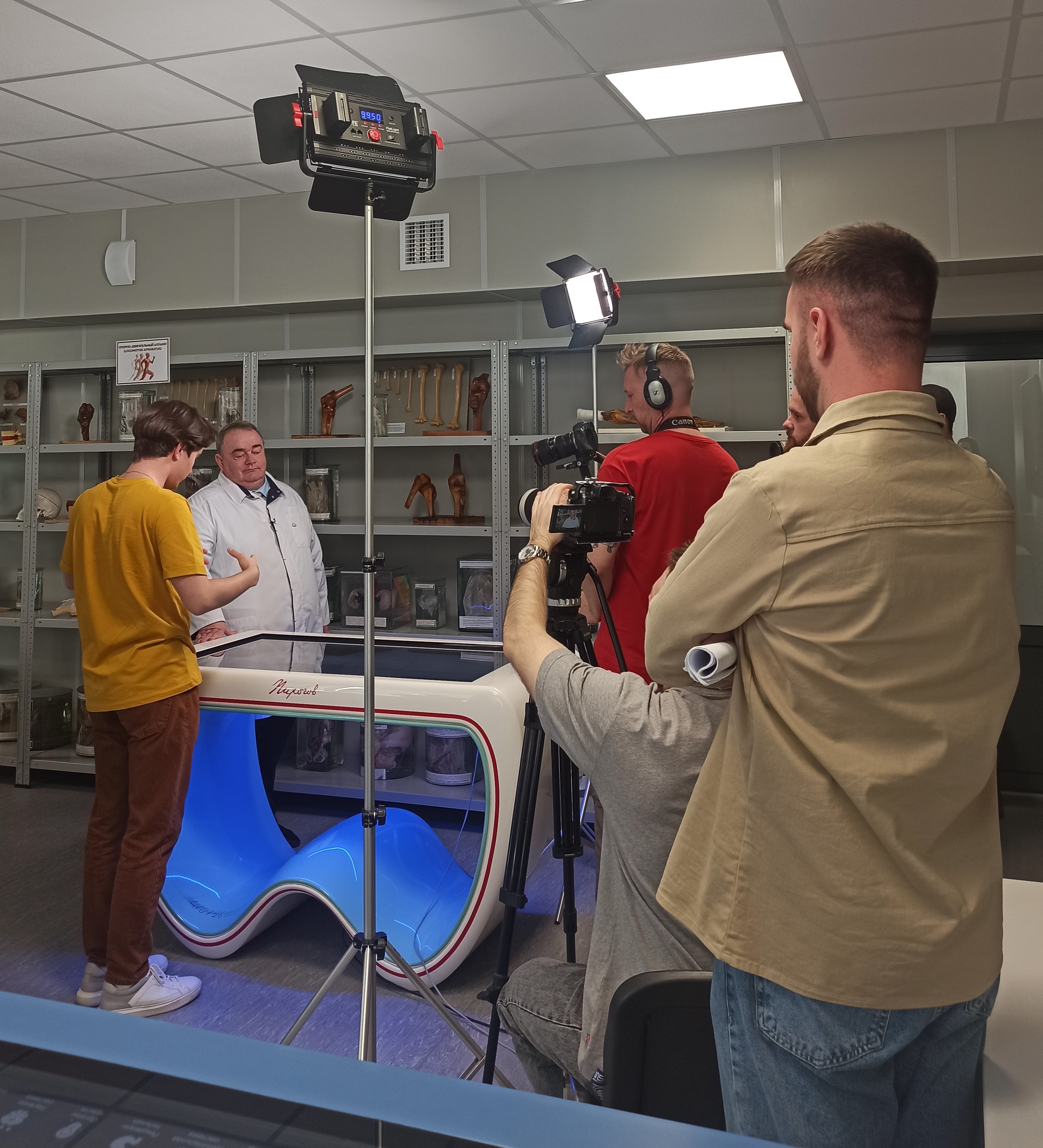15 апреля съемка началась со знакомства и интервью с ректором Сергеем Николаевичем Алексеенко, в ходе которого были озвучены основные результаты и приоритетные направления развития Университета.