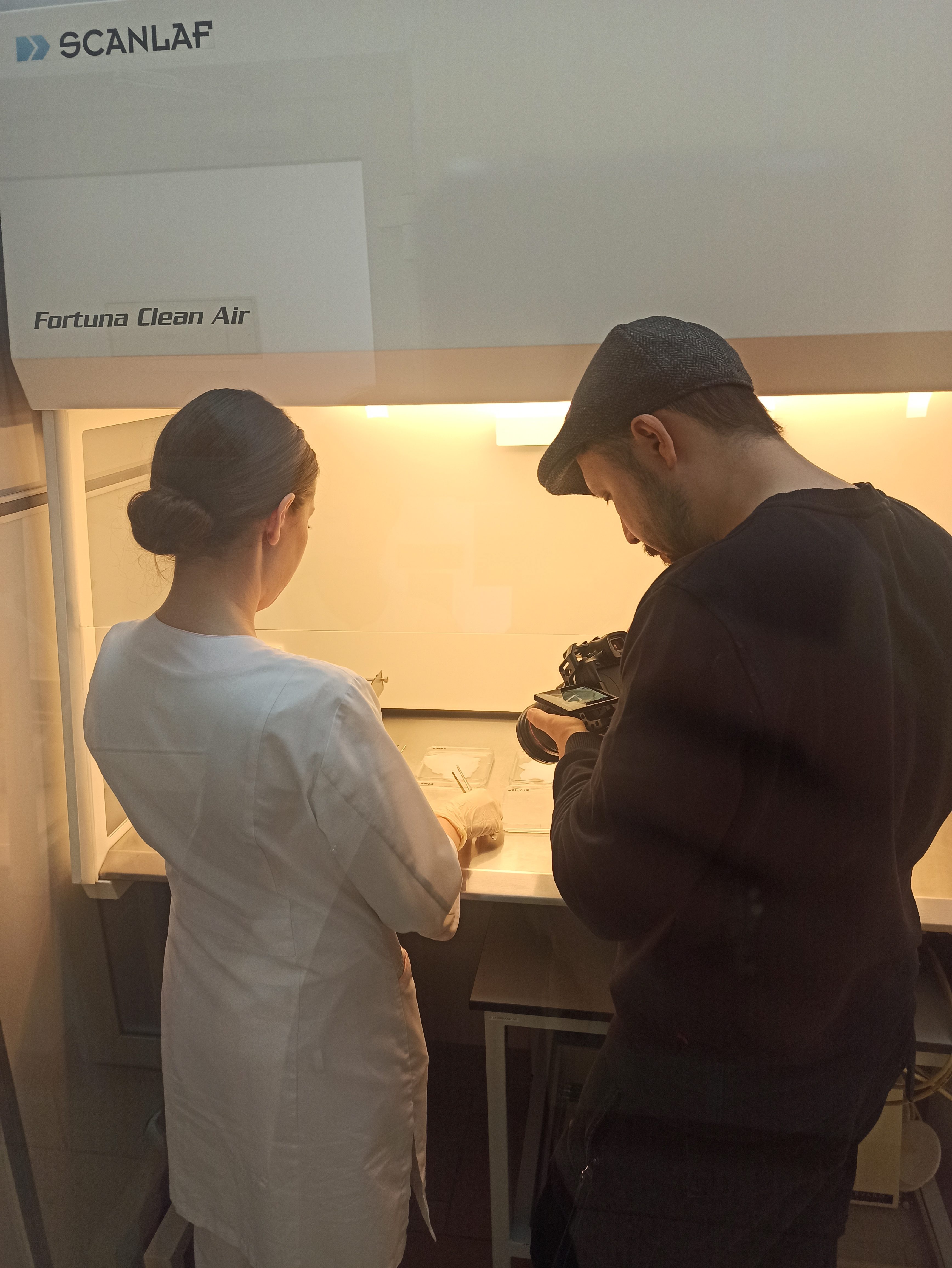 В лаборатории регенеративной медицины съемочной группе продемонстрировали процесс получения поликомпонентого геля репаративного действия, биологического коллагена, который можно использовать как жидкий пластырь.