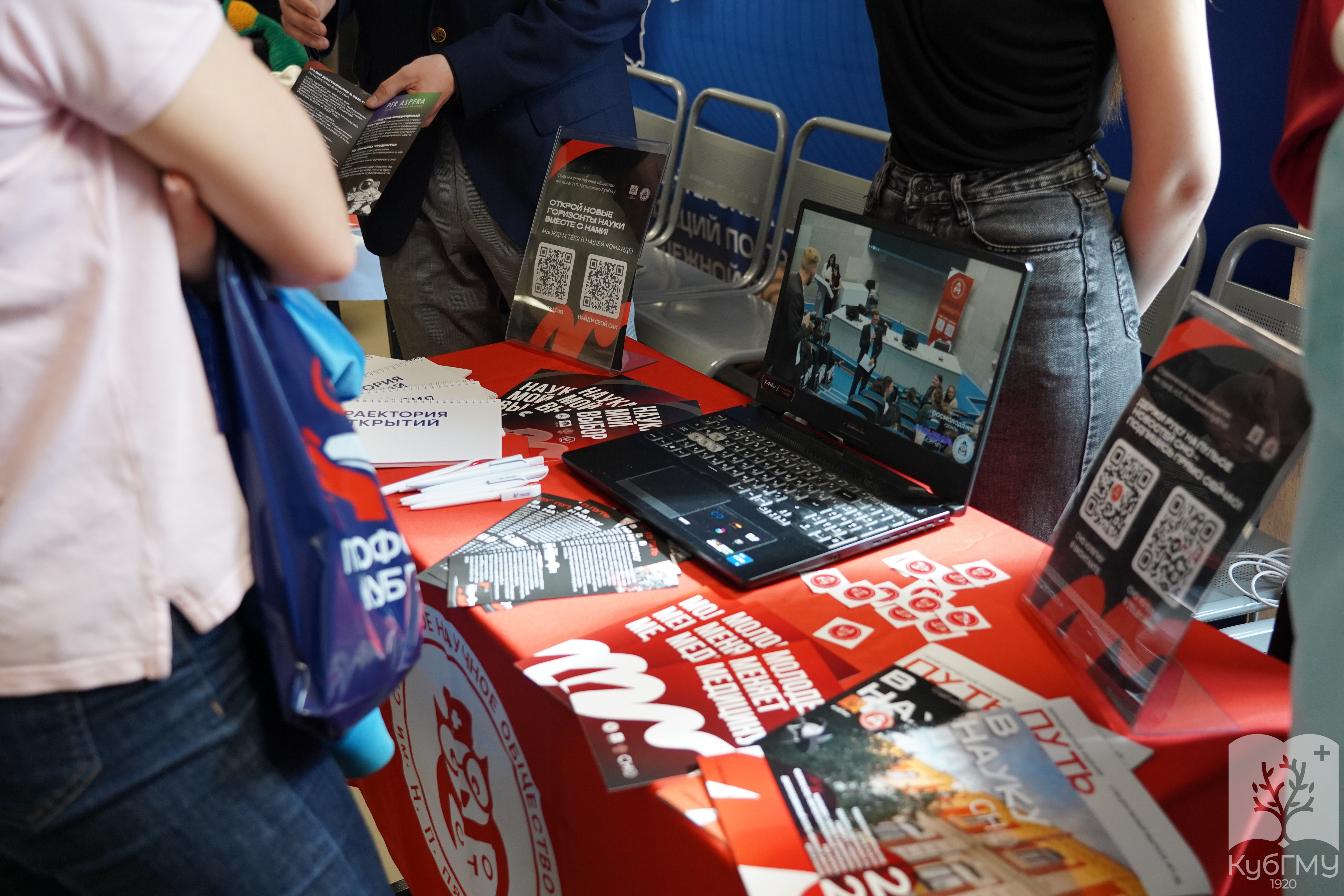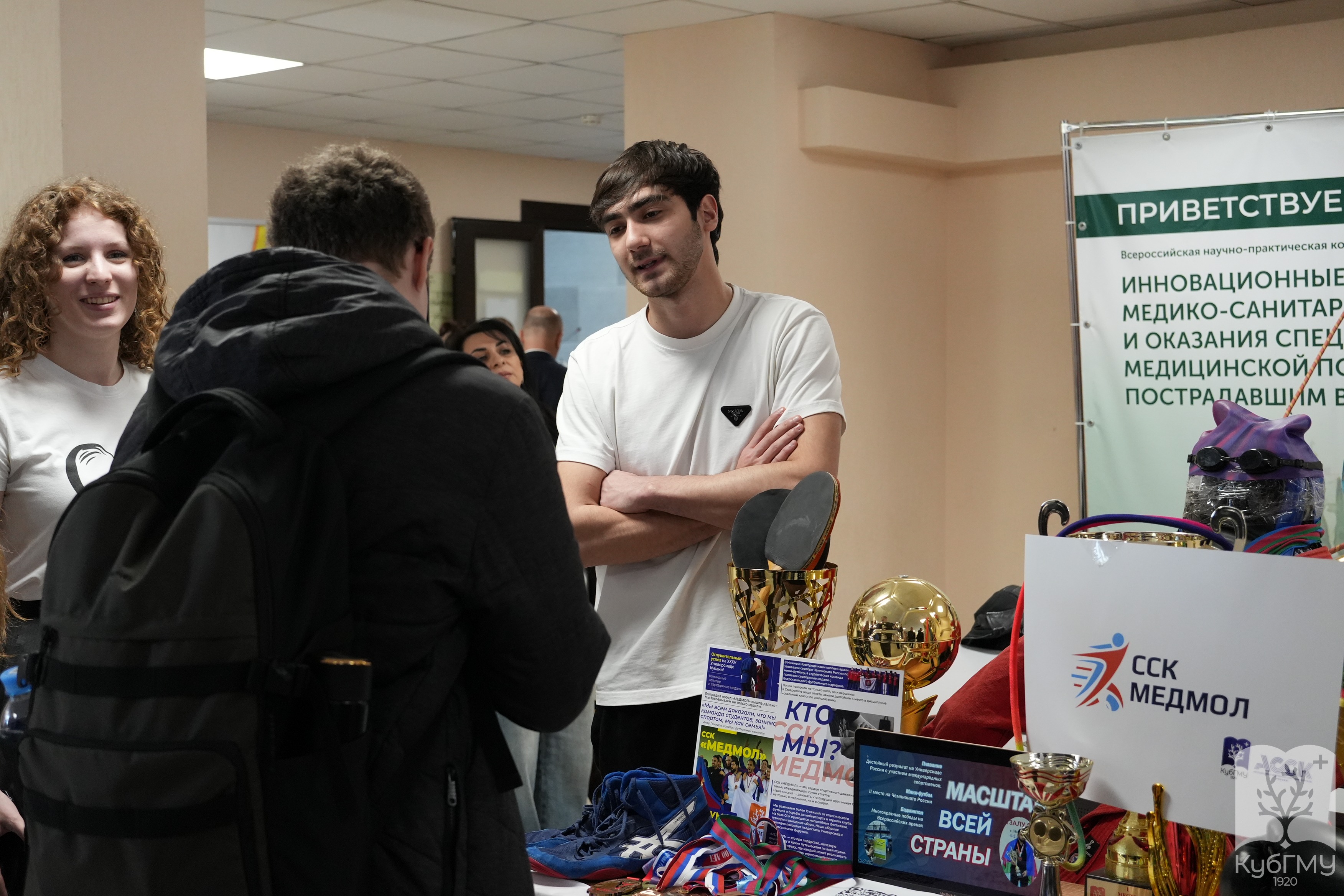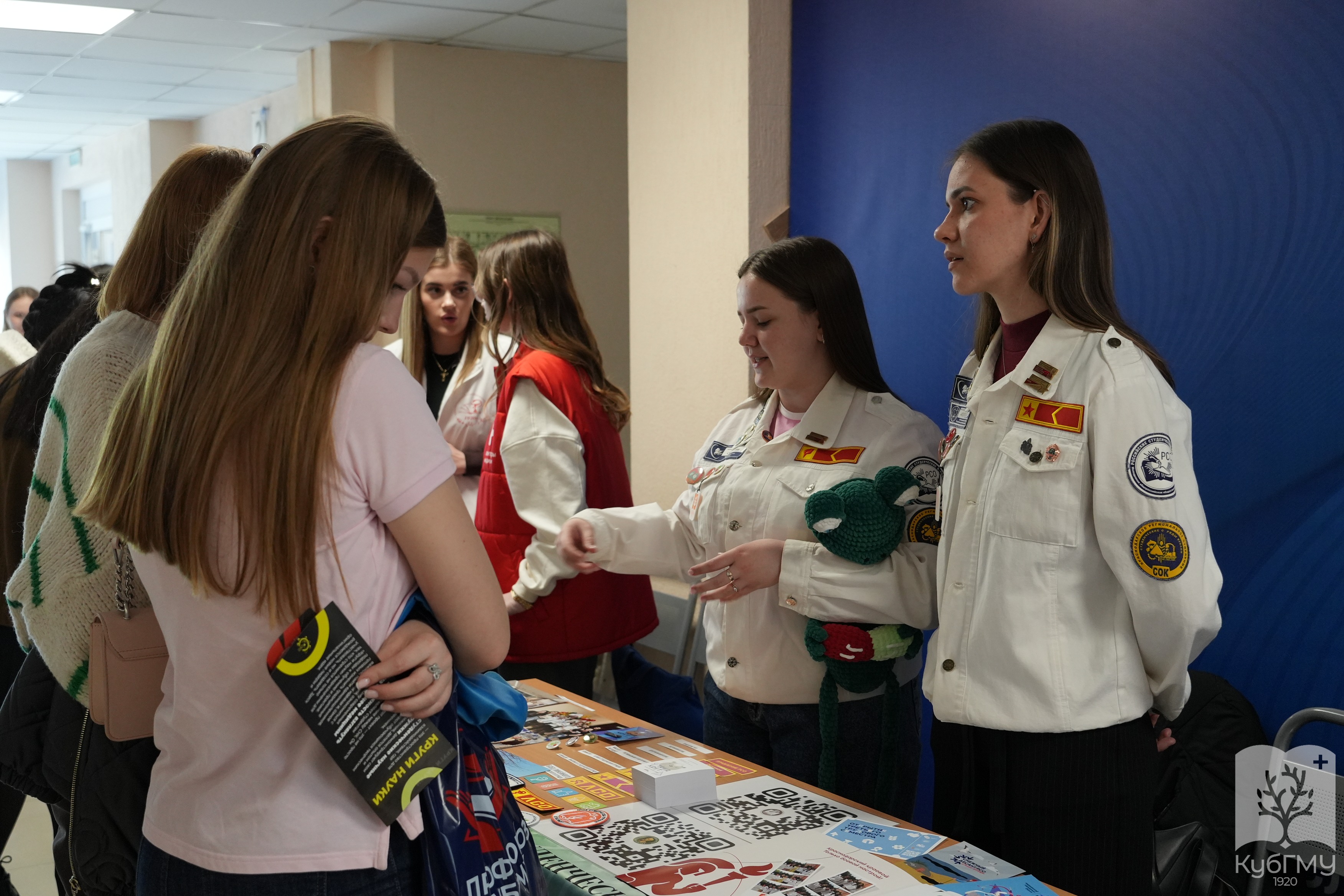 В течение дня работали площадки студенческих объединений. Активисты делились опытом участия в проектах и рассказывали о внеучебной жизни университета, помогая гостям лучше познакомиться с атмосферой КубГМУ.