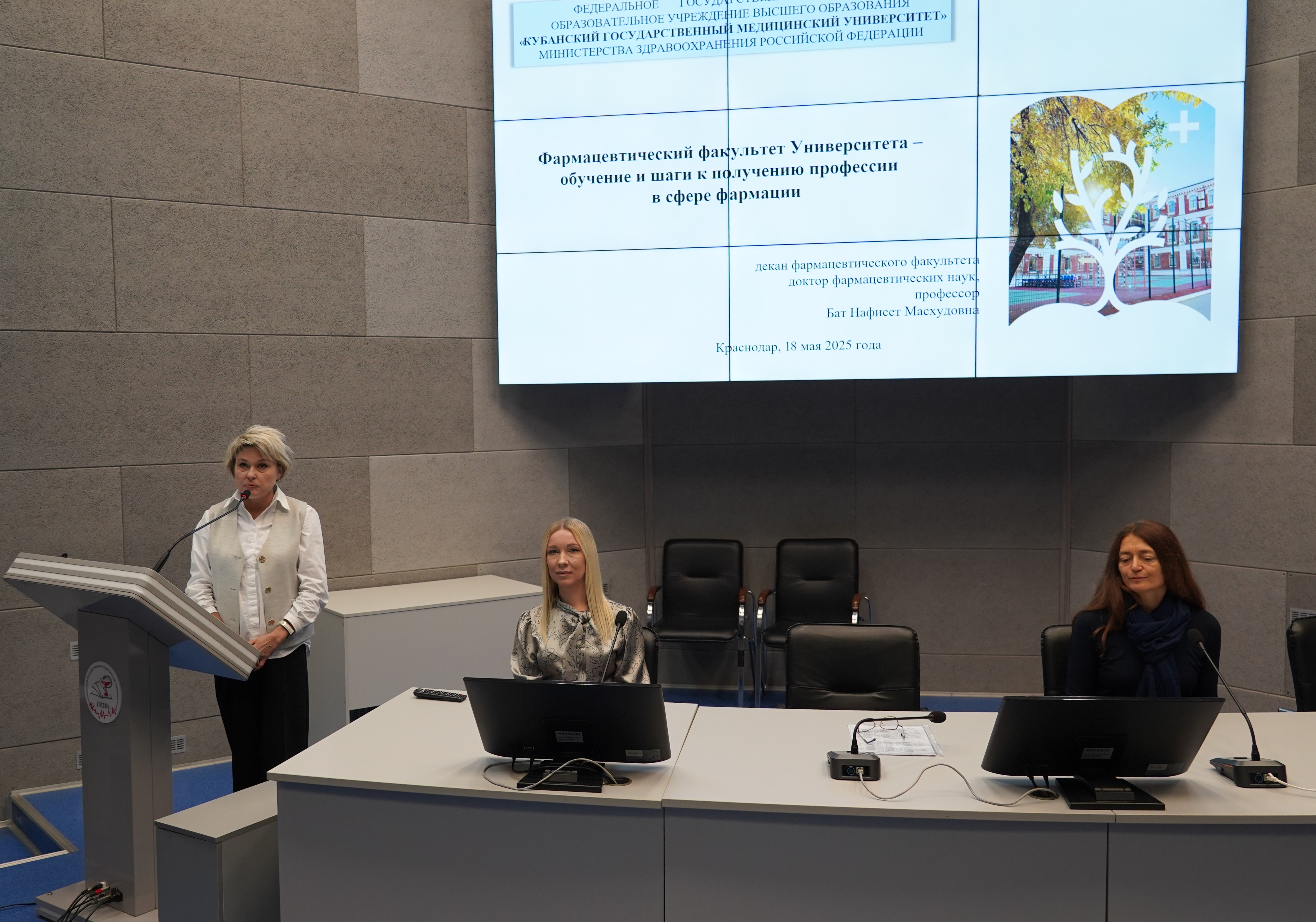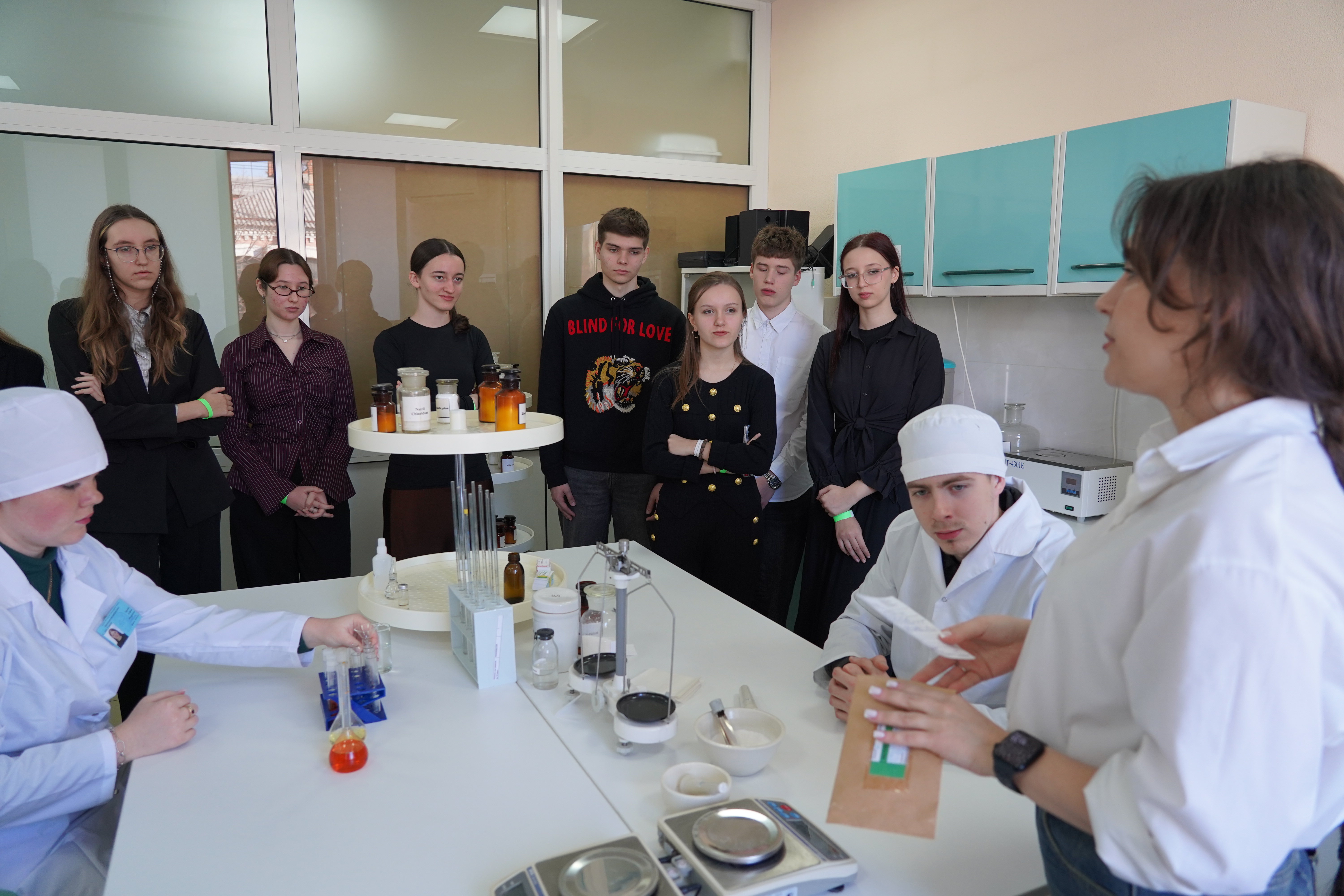 29 ноября в Кубанском медуниверситете в рамках программы «Медицинские классы» прошло профориентационное мероприятие для школьников, посвященное фармацевтическому направлению подготовки. Участники познакомились с профессией провизора, ключевыми направлениями фармацевтической деятельности и особенностями обучения на фармацевтическом факультете.