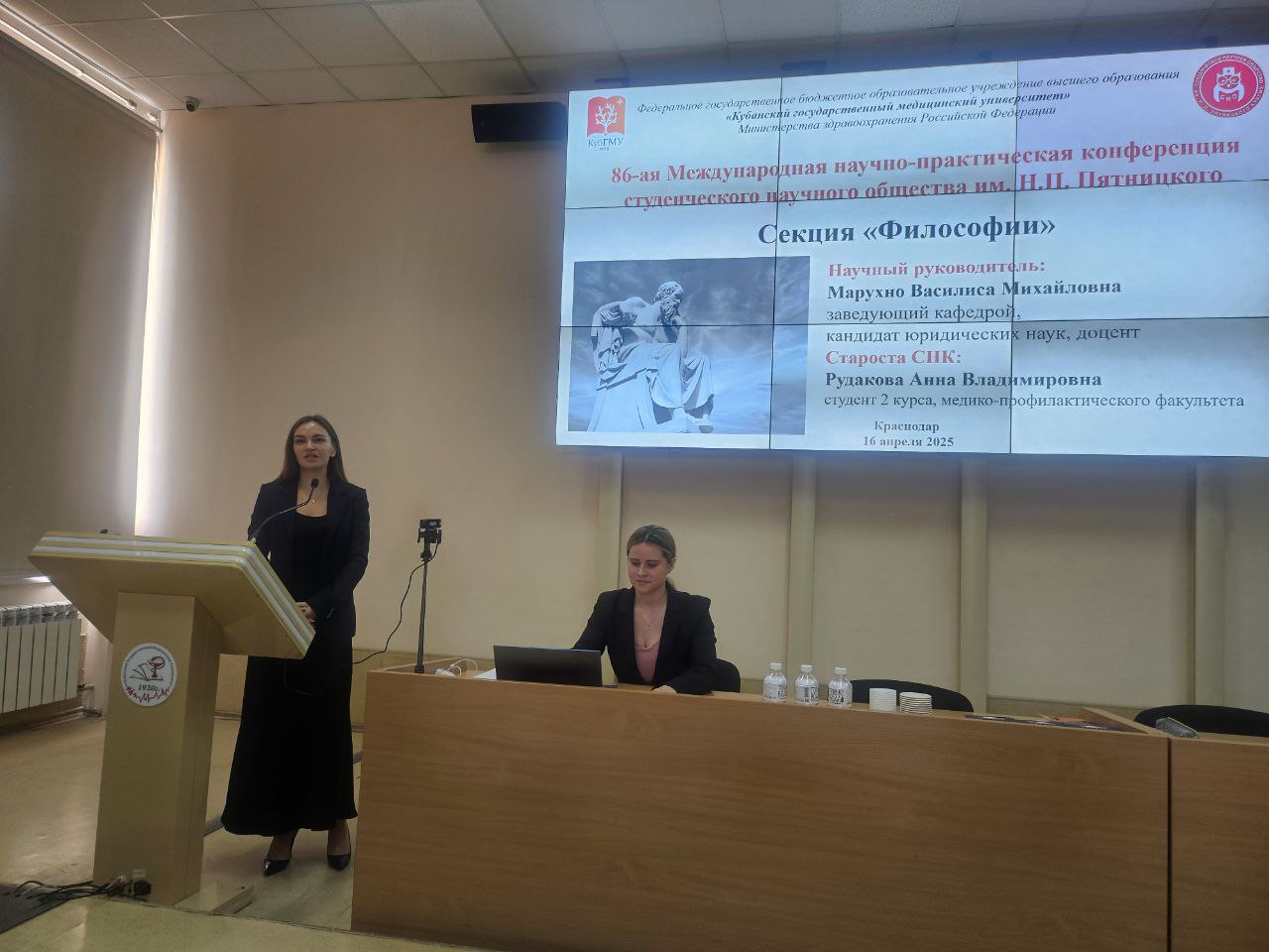 | Кириченко В.К., | Терапевтические возможности философии | Сборник тезисов 86-ой Международной научно-практической конференции Студенческого научного общества им. профессора Н.П. Пятницкого | Краснодар. 2025. |